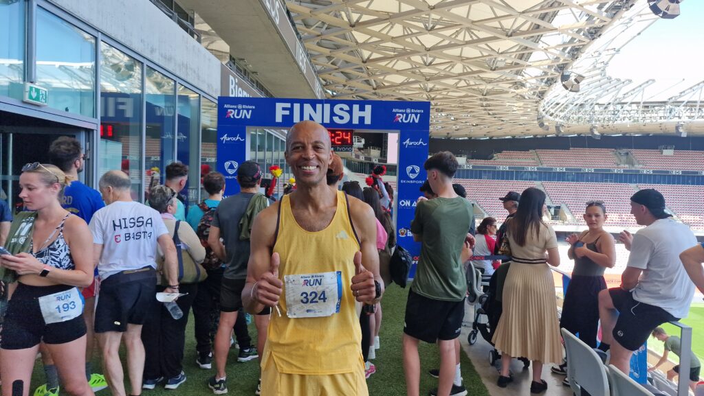 Stéphane Diagana, premier champion du monde d’athlétisme masculin français grâce à son titre obtenu sur 400 m haies en 1997, sera également présent lors de l’évènement. Crédits photo : Allianz Riviera Run by On Air